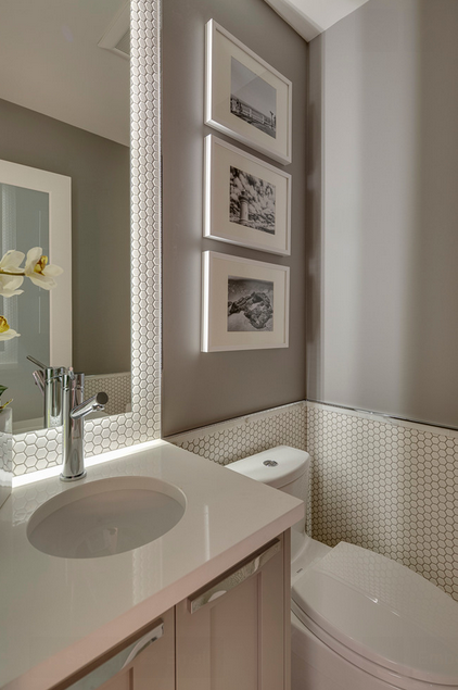 I love everything about this open concept kitchen/dining and living space! The subdued colour palette, marble, or looks-like-marble kitchen backsplash, the funky light fixtures and the rustic dining table and bench, beautiful! The chalkboard wall adds a casual element to this pretty space!